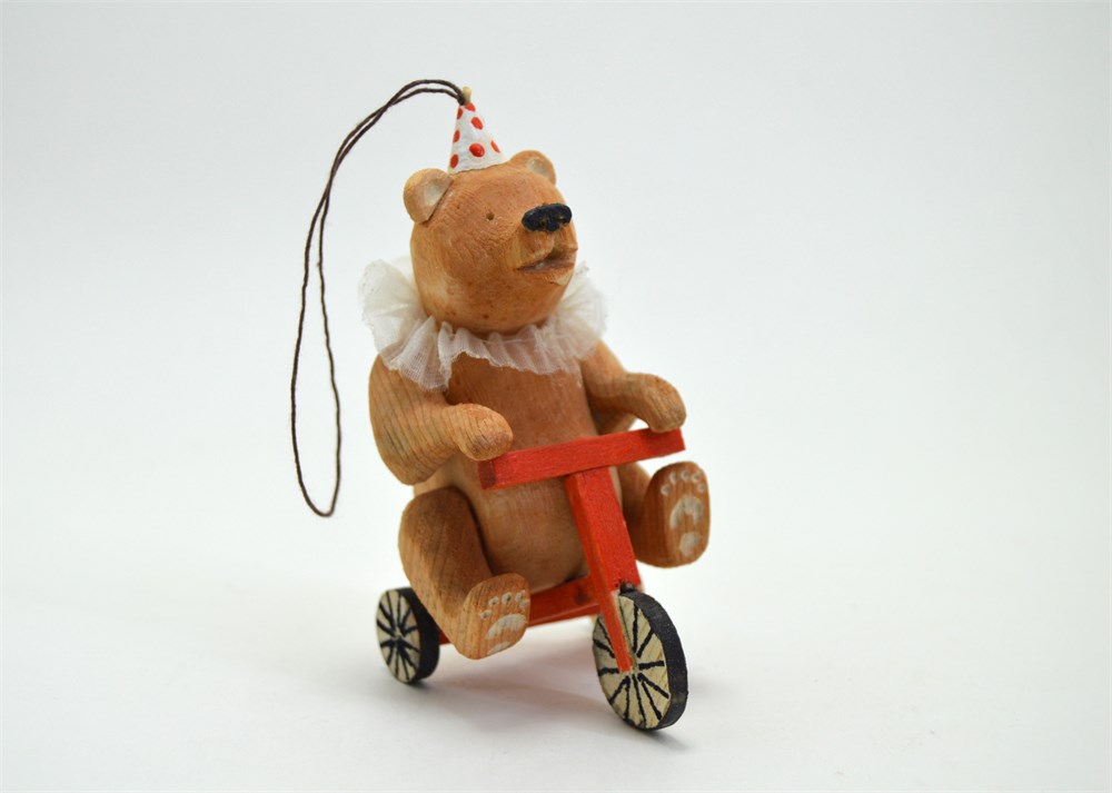 Цирковой медведь на велосипеде - авторская елочная игрушка ручной работы.