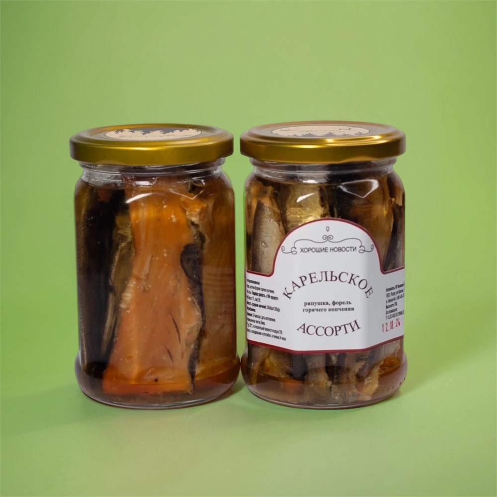 Консервы "Карельское ассорти" – копчёная ряпушка и форель в одном волшебном союзе.